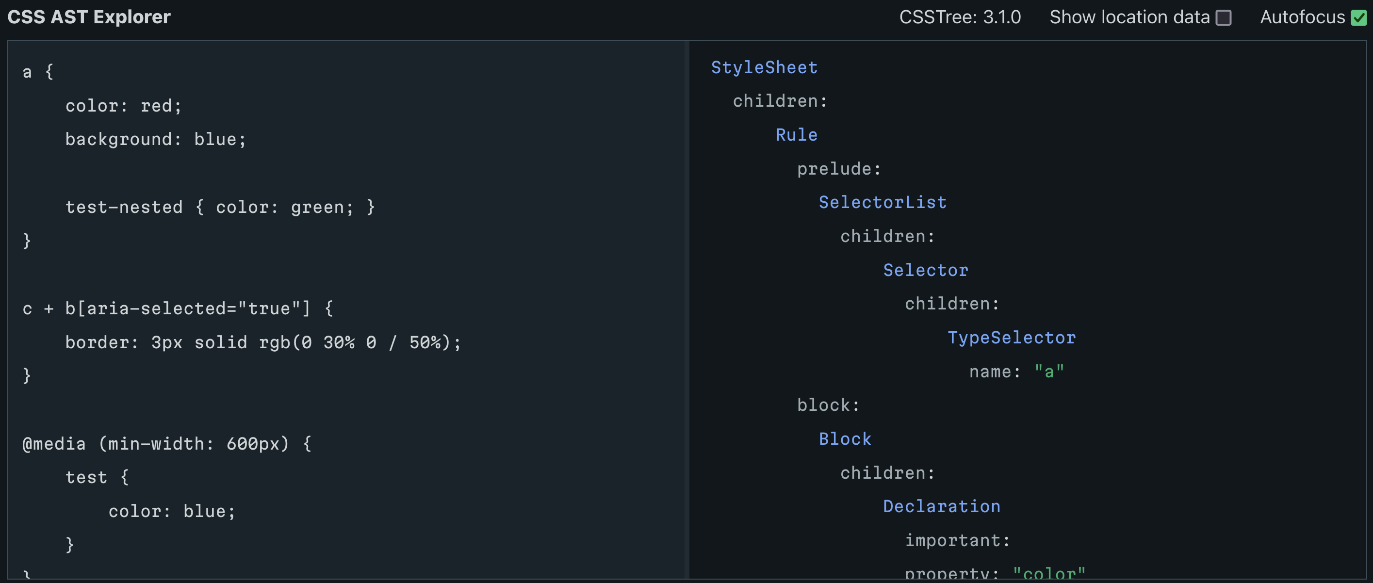 • CSS AST Explorer