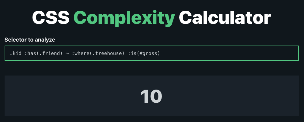 There's lots of places in CSS to have complexity, but we tend to focus on selectors most of the time. Let's have a look at other places too.